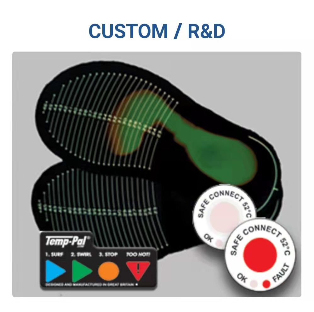 在Thermex?紙張上面生成的顏色增強圖像舉例 Thermex?是一個獨特的溫度顯示材料.如同紙張那么薄,Thermex?的顏色改變來展示在任何的兩個接觸表面的相對溫度分布.一旦暴露至溫度Thermex?立刻且地改變顏色.顏色的強度和暴露的溫度直接相關,使得Thermex?來認出高溫或者低溫區.Thermex?是便宜的,的,且可用完就丟棄的Thermex?是一種獨特的溫度指示材料。與標準紙張一樣薄,Thermex?可以改變顏色揭示任意兩個接觸面之間的相對溫度分布。在暴露于溫度下時Thermex?板材瞬間改變顏色。該顏色的強度與顏色直接相關它所暴露的溫度,允許Thermex?發現高溫或低溫區域。Thermex?價格低廉和一次性。